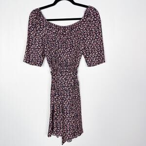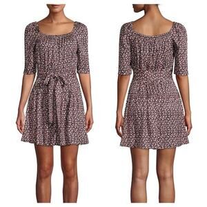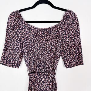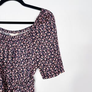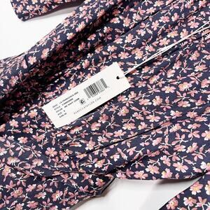 New Rebecca Taylor 0 Navy Blue Pink Francesca Floral Square Neck Short Dress