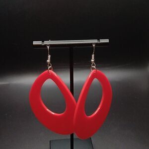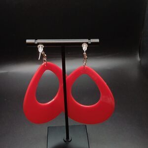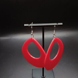 Red Large Acrylic Dangle Lightweight Fashion Earrings Measures: 3.5" Long x 2.5" Wide New