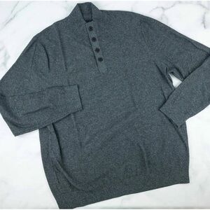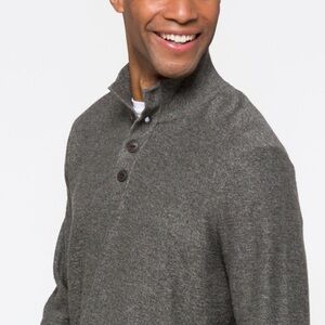 This mock neck sweater is like a mash-up of a sweater, a slightly cowled turtleneck, and a henley. I love the casual look to it, with the four buttons from the collar down.