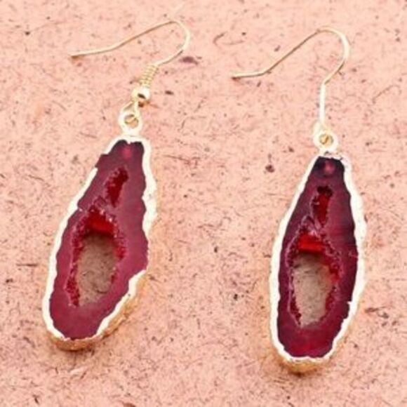 New!! Red faux stone, gold leaf bohemian Druzy earrings. So pretty!!