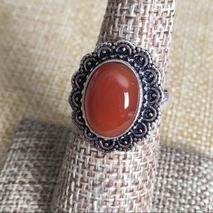 New Red Carnelian Crystal Stone Silver Overlay Ring Size 6.5