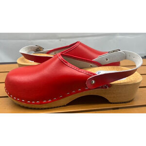 New Red ORTHOPEDIK Natural Leather Swedish Wood Clogs Mules 39 EU 8.5 US