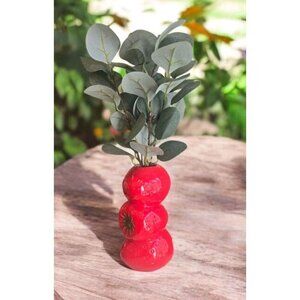 New Red Strawberries Summer Stacked Vase W/ Artifi / Fake Plant Room Home Decor