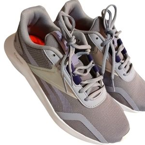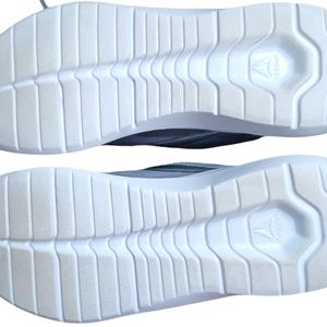 like new reebok sneakers I tried them on and they were to tight I have very wide feet there a size 7 fits more like a 6 1/2. no spots or rips or stains maybe a tiny bit underneath the shoe from trying them on and walking around a bit but that's it. memory foam sole!