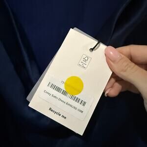 Reformation Corey Satin Dress in Danube Navy Blue. Women's Size M / Medium. Features backless open back, sleeveless, cowl neck, long midi length, form fitting. shiney satin fabric. 88% renew acetate, 12% polyester. Brand new with tags. Retail $348.