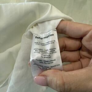 Reformation Kastoria Dress in White. Women's Size 4 / Small. Features ruched fitted bodice, adjustable removable shoulder straps, full tulle skirt, back smocking, strapless, straight neckline, back zipper closure, voluminous skirt, long maxi length. 98% organic cotton, 2% spandex. Brand new with tags. Retail $398.