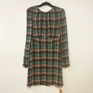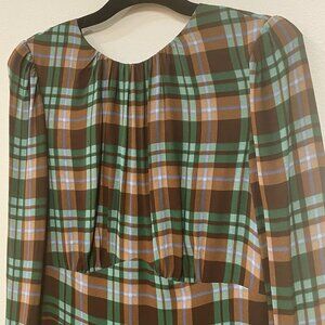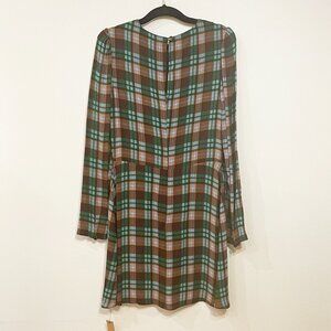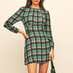 New Reformation Laken Plaid Mini Dress Morena Green Brown 0 $218