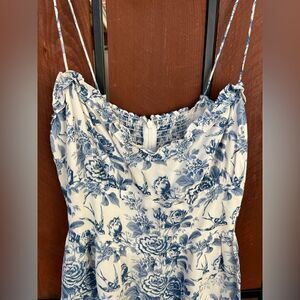 New Reformation Marin Floral Mini Dress in Blue and White Pompadour