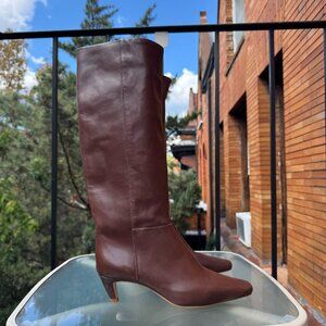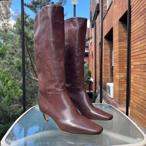 New Reformation Remy Knee High Boots Kitten Heel Chesnut Brown Womens 6