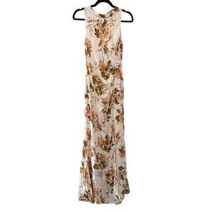 Reformation Senna Floral Maxi Dress in Bella Cream. Size 0. Features lightweight georgette fabric, non-adjustable straps, cowl neckline, flattering side ruching, high side slit, princess seams for a great fit, fully lined, hidden button back with keyhole and concealed zip closure, long maxi length, floral print. 100% viscose. Brand new with tags. Retail $348.