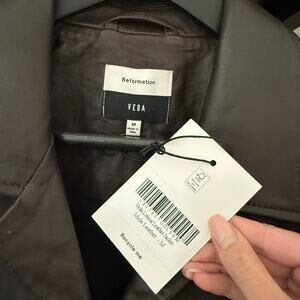 Reformation Veda Louisa Leather Jacket in Mole Brown. Women's Size M / Medium. Features collared, snap button closure, stitching, lined, soft leather exterior. 100% leather. Brand new with tags. Retail $598.