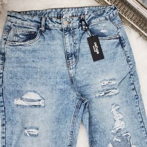 New! Refuge Denim Mom Relax High Rise Distressed Ripped Jeans. Size 9.
