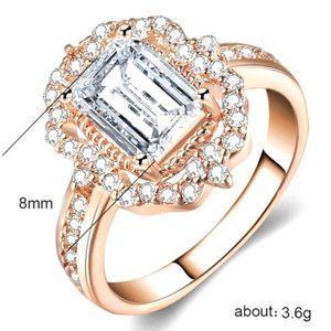 New Regency Bridgeton Era 14k Rose Gold 925 Silver Emerald Cut Diamond Ring