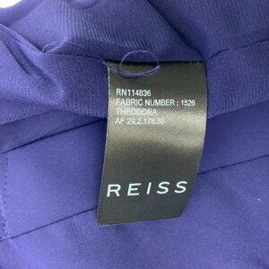 REISS Theodora Purple Pencil Fitted Dress Sleeveless Knee Length, Business, Formal, Party/Cocktail, Workwear. Pencil style, fitted, round neck, sleeveless, rear zip fastening, embroidered, fully lined. Color: purple. Material: 92% Polyester, 8% Elastane. Dry-clean. US size 4. The dress was photographed on mannequin size 6.