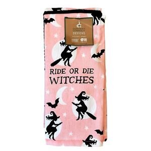 New Release Deborah Connolly Halloween RIDE OR DIE WITCHES Kitchen Towel Set
