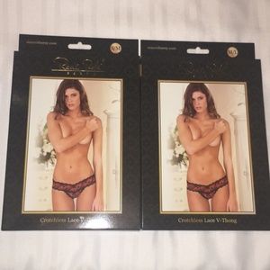 Womens Rene Rofe Crotchless Lace V Thong. Color Red Black.