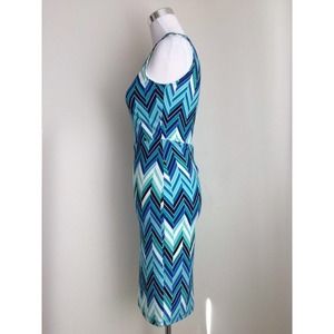 New Renee C Blue Chevron Print Sheath Dress Sleeveless Back Zip Womens Size S