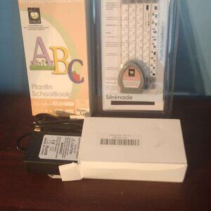 New in Box Replacement AC Power Adapter for Cricut Cutting Machine Expression, Personal Expression Create, Expression 2, Cake, Mini, Explore, Model: KSAH1800250T1M2 Cutting Charger Power Supply Wall Plug Cord. Also included are cricut accessories as shown in the photo including Serenade and Plantin Schoolbook Cricut Cartridge – all new!