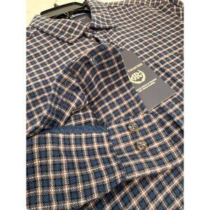 New Report Collection Men's Size L Soft Touch Flannel Blue Plaid Classic Fit