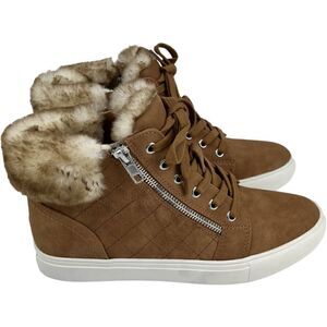 New Report Women US 7.5 Brown Shoes Fur High Top Sneakers Lace Up Zip Booties