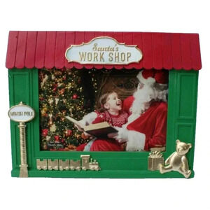 New Resin Santa Claus Work Shop North Pole Christmas Picture Frame 4"x6"