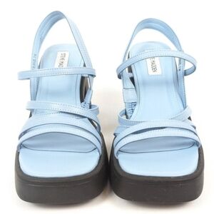Elevate your look with these Steve Madden platform sandals striking contrast blue straps chunky black sole retro-inspired design combines a substantial block heel with multiple smooth straps for a stylish and Pastel Baby Blue comfortable fit. Steve Madden Womens Size 10 True To Size New With Tags Weekend Going Out Beachey Wedding Vacation Bridal Shower Events Business Casual Brunch Pool Boho Classic Minimalist Modern Must-Have Spring Summer Whimsigoth Bratz Classic