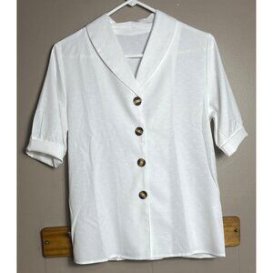 New Retro Blouse Button Up Shirt Poly Basic 50s Classic Top Womens S