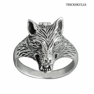 New Retro Wolf Head Poison Pill Secret Compartment Locket Ring 8 9 10 11 12 13