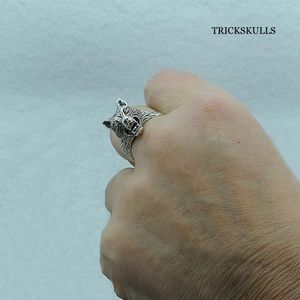 New Retro Wolf Head Poison Pill Secret Compartment Locket Ring