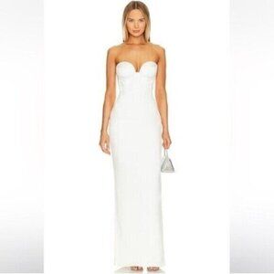 New Retrofete Luna Satin Strapless Maxi Corset Style Gown Dress White Size Large