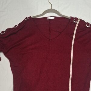 New Retrology Women's Red V-Neck Sweater Lightweight Knit Size L