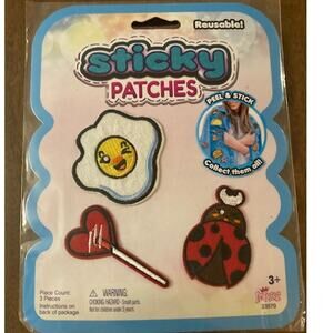 New! Reusable Sticky Patches - Fried Egg, Heart Lollipop, & Ladybug Patch