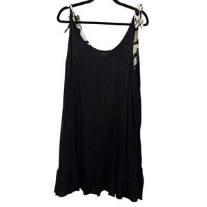 New Reversible Tribal Black & Beige Tropical Print Sleeveless Dress With Ruffle