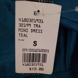 New Rhapsodielle Trac Mini Teal Short Sleeve Dress