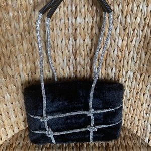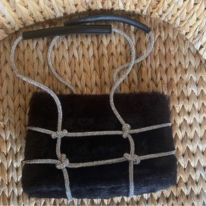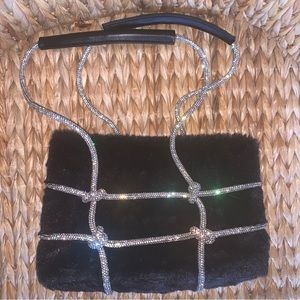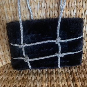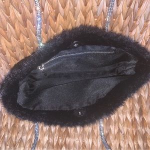 New Faux Fur and Rhinestone mini bag. Rhinestone handles have faux leather handles. Looks the same in both sides.