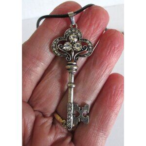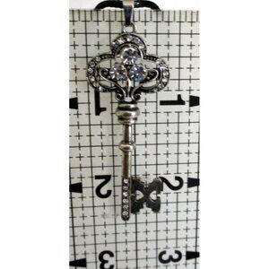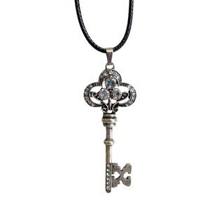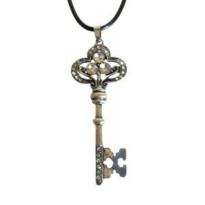New Rhinestone Key Pendant Necklace on 20" to 22" Black Cord Vintage-Style Jewel