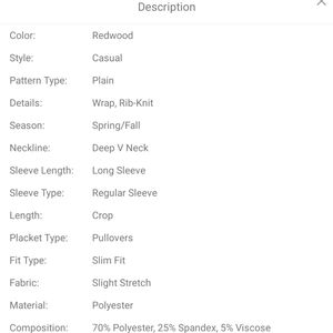 Shein, new Rib Knit surplice neck tee cropped color : redwood length 16.3 bust 31.5 sleeves length 24.1