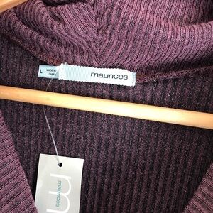 Maurice eggplant cowl neck tunic dress. Size L. New with tag. Ribbed material. Great color for fall and winter!