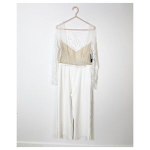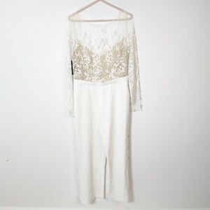 New with tag RIME ARODAKY Braham cropped embroidered tulle and crepe jumpsuit. Comes with garmet bag. Bottom of Garment bag has some dirt from it being in storage.