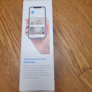 New Ring Indoor Cam Compact Plug-In HD Security Camera with two-way talk - White. Cam is brand new sealed in box. Please note small tear to vox top as pictured. Please feel free to ask any questions.