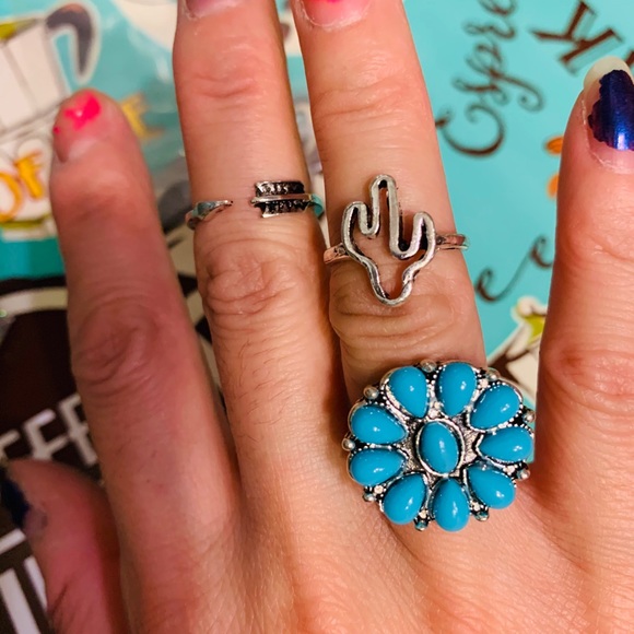 Natural stone Sodalite ring Adjustable size New in package and comes with the dust bag 3 rings a set New in package Total 4 rings and 🛒💃🏻
