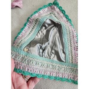 New Rinikini Bikini Top Small Crochet Metallic Teal Blue Silver Tassle