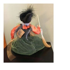New Ritzy Glam Halloween Witch Doll Shelf Sitter Leg Dangler w/ Broom 29"