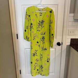 New! River Island Tie Waist Midi Dress Green Floral 31724