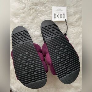 Elegant suede puffy shoes by ROAM. Vibrant berries color. Ideal for versatile wear.