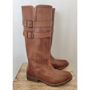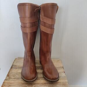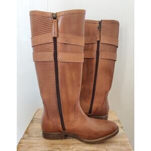 New Roan Date Tan Brown Leather Tall Riding Boot Sz 7.5M