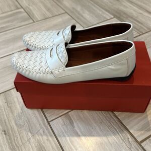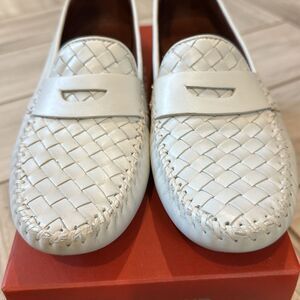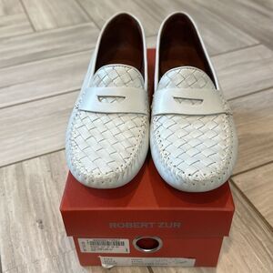 Beautiful white woven Petra leather loafers by Robert Zur. New in box. Have been tried on and slight dust under toe on sole (see photo).