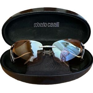 * Feature: Signature Roberto Cavalli logo on temples.