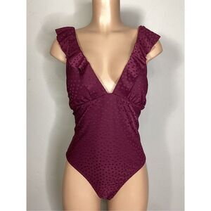 New. Robin Piccone plum ruffle one piece. Size 14. Retails $168