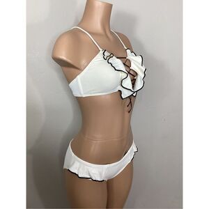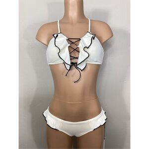 New. Robin Piccone ivory white Malia bikini set. Ruffle details. Lace up front.